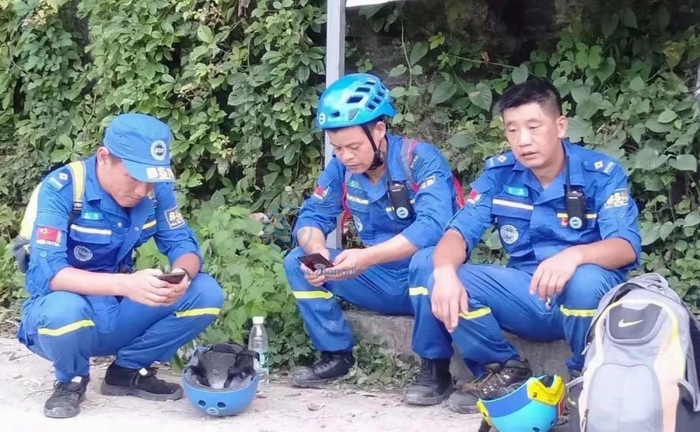 ▲图为中鼎员工许峰(右一),参与蓝天救援队救援工作